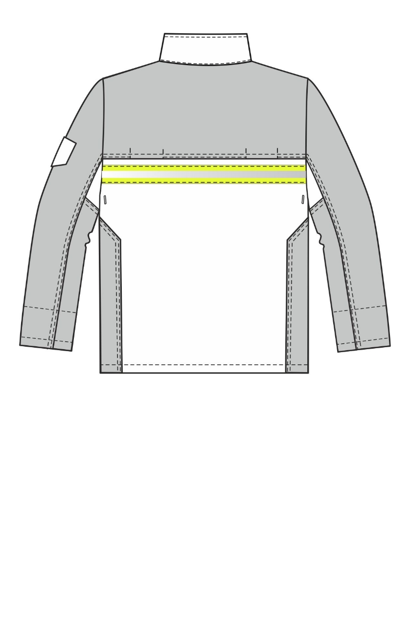 В верхней части боковых швов, под проймами обработаны вентиляционные отверстия. СОП 50 мм по шву притачивания кокетки огнестойкий.